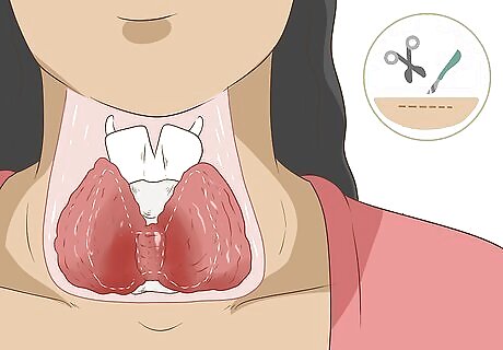 Undergo surgery to remove a goiter if it interferes with swallowing. A goiter is usually not uncomfortable, but in some cases, it might lead to a feeling of fullness or tightness in your throat, and occasionally it may interfere with your ability to swallow. If that happens, your doctor might recommend that you have surgery to remove part or all of the goiter. Due to the risk of complications, your doctor typically will not recommend removing a goiter if it is not affecting your health. In rare cases, your doctor may recommend removing your thyroid altogether, such as if you're having trouble swallowing or hormone replacement therapy isn't working for you. However, this is not a common treatment for Hashimoto's disease.