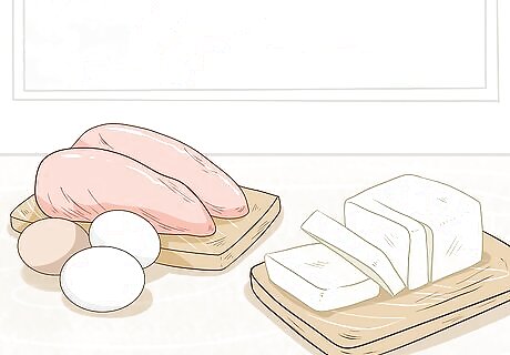 Stick to lean proteins for a healthy energy boost. Proteins are essential to a healthy diet, but it's best to opt for lean choices so you're not adding unnecessary saturated fat to your diet. As you plan your meals for the week, try to include lean proteins like chicken, turkey, fish, eggs, and tofu. Beans and nuts are also a good source of protein. If you enjoy red meat, you can still have it, but do so in moderation. Lean proteins should be included in the majority of your meals.