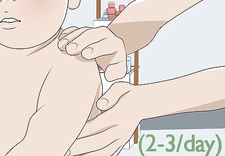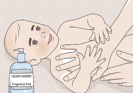Keep applying moisturizer 2 to 3 times a day. Eczema is severely dry skin, so adding moisture helps to combat the itchiness and pain. Try to moisturize your baby’s skin 2 to 3 times a day if you can, and pay special attention to the severely red and dry areas. Try moisturizing your baby during diaper changes when you are already removing their clothes.