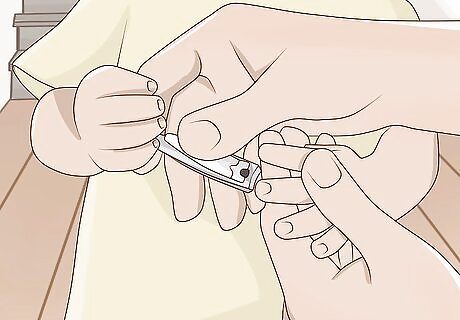 Cut your baby’s nails so they don’t scratch themselves. Eczema is irritated by scratching or itching. Use some infant nail clippers to keep your baby’s nails short so they don’t accidentally cause their eczema to flare up or get worse. You can also keep your own nails short to prevent accidentally scratching your infant when you change or hold them.