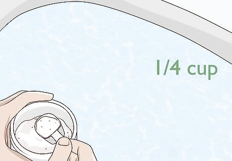 Give your baby a bleach bath twice a week if your doctor recommends it. Consult your doctor before you decide to give your baby a bleach bath. If they tell you to, pour ⁄4 cup (59 mL) of bleach into a half-filled, warm bathtub. This small amount of bleach added to the bath makes the water soothing to your baby, not harsh. Bathe your baby in the bleach bath twice a week, and avoid contact with their eyes.Warning: Always talk to your infant’s doctor before starting bleach baths. These baths are only for extreme cases of eczema and should not be done without a doctor’s recommendation. Staphylococcus aureus is a bacterium that lives on the skin of many children with eczema and can occasionally cause flareups. Bleach baths fight off these bacteria. Never bathe your baby in bleach without diluting it first.