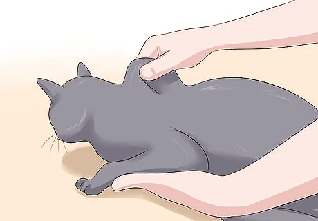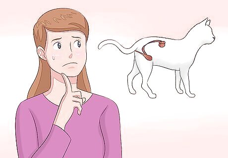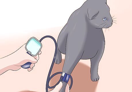Check to see if your cat is hydrated. A cat with kidney disease cannot concentrate urine like a healthy cat. If the fluid loss exceeds fluid intake the cat becomes dehydrated and this makes it feel unwell. You can detect dehydration by using the finger and thumb of one hand to grasp the scruff over the shoulders and lift the skin vertically away from the backbone. When you let go, the skin of a well-hydrated animal springs back into place immediately. In a dehydrated animal, the skin lacks elasticity and may take a few seconds to fall back into place.