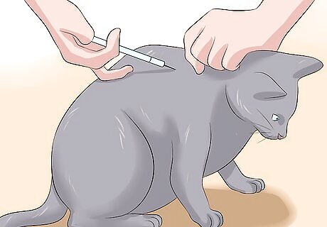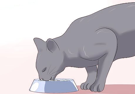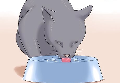 Keep your cat hydrated. Simple things like providing a pet water fountain, or placing dog bowls of water around the house, may encourage your cat to drink. However, if the cat becomes dehydrated it may be necessary to give the cat intravenous fluids and put it on a drip until it recovers enough to be able to drink on its own. This involves the pet being admitted to the veterinary hospital and a catheter being placed in one of its front legs. A drip line is attached and slow intravenous fluids are given over the course of 2 or 3 days.