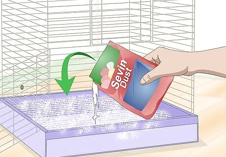 Place insecticide in the cage. If you are having a persistent problem with mites or lice, you may want to apply an insecticide to the bottom of your bird's cage or to your bird's water. Over-the-counter insecticides, such as Sevin Dust, can keep parasites from surviving at the bottom of your canary cage when it is applied to the cage floor. You can place other products in your bird's water, such as Avian Insect Liquidation, which keep parasites at bay when the bird ingests them. Products such as Sevin Dust are typically available at your local garden center. Avian Insect Liquidation can be supplied by your veterinarian.