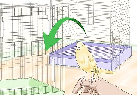 Move your canary to a clean cage. Once you have started treating the bird itself, you will also need to clean its cage. Move your canary to a different cage, so that you can clean its permanent cage from top to bottom. Typically, you should take your bird to the vet in a smaller cage, and you can keep it in that smaller cage temporarily while you clean the bigger cage.