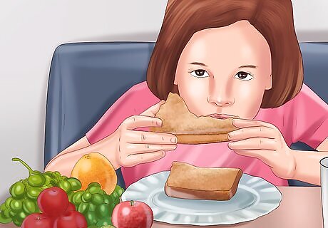 Feed your kids a calcium-rich diet. Bone growth and density depends in large part on a good diet and especially on getting enough calcium. Calcium is a mineral that goes into bone as well as teeth and finger and toe nails. It’s found in many different foods, so ensure that your kids are getting the right things and the right amount of calcium. Dairy foods are rich in calcium. Choose foods like milk, yogurt, cottage cheese, and other cheeses several times per day for your kids. There’s also large amounts of calcium in leafy greens like spinach and kale, in fish like salmon and sardines, in beans and tofu, and in oranges. How much should your kids get per day? It depends. Infants need about 200 to 260 milligrams per day. Toddlers aged 1 to 3 need about 700 mgs, while children aged 4 to 8 need 1,000 mgs and kids from 9 to 19 1,300 mgs. Kids and teens will need several servings of calcium-rich food per day to meet the minimum. For example, an 8 oz. portion of plain yogurt has about 300 mgs of calcium. A half cup of raw kale has about 90 mgs.