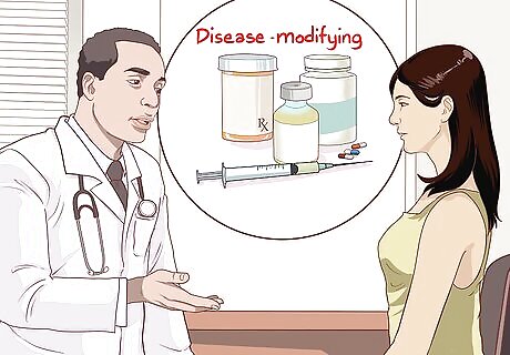 Try specific "disease-modifying" therapies. As previously mentioned, the only way to actually alter (i.e. slow) the progression of the disease itself is to opt for disease-modifying therapies. These are most successful for the relapsing-remitting form of MS. They have unfortunately shown little utility in the other forms of MS. Treatment options include Beta interferons, Dimethyl fumarate, Teriflunomide, Natalizumab, Glatiramer acetate, Fingolimod, Mitoxantrone, and Alemtuzumab. These treatments may have significant side effects, so it is important to discuss the pros and cons with your physician prior to initiating treatment.
