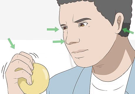 Ground yourself by engaging all your senses. While ignoring a panic attack is impossible, keeping yourself engaged with your surroundings or an activity during the attack can help you get through it. Try to focus on what you are seeing, hearing, feeling, and smelling. You may find it helpful to touch an item, such as a stress ball or a keyring, and also focus on what it looks like. If a friend or loved one is with you, they can help you ground yourself. For example, they might give you an object to hold and ask you to describe how it looks and feels. If someone you're close to is having a panic attack, you can help them stay grounded by holding their hands and asking them to breathe with you. Keep your breathing steady, in through your nose and out through your mouth. Ask them to hold their breath for 1-2 seconds before each breath, then extend by a second each time.