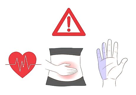 Get familiar with your panic attack symptoms. Recognizing and understanding your panic attack symptoms makes them less frightening and gives you power over them. Think about how your panic attacks usually feel, so that next time an attack begins, you'll immediately know what it is. This will help you stay calm and in control, and may even short-circuit the attack before it can really get started. Common symptoms of panic attacks include: Feelings of dread or a sense of impending doom A feeling of unreality or a fear that you are losing your mind Shortness of breath A racing or pounding heart Shaking Chills Nausea or stomach pain Light-headedness or dizziness Numbness or tingling in your hands, feet, face, or chest