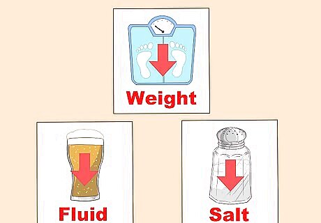 Make lifestyle changes. There are a variety of things your doctor will ask you to do to minimize your condition. Have a discussion with your doctor about what you can do to help reduce your symptoms and the condition overall. Helpful changes you can make include: Lose weight. Limit your fluid intake. Minimize the salt in your diet.