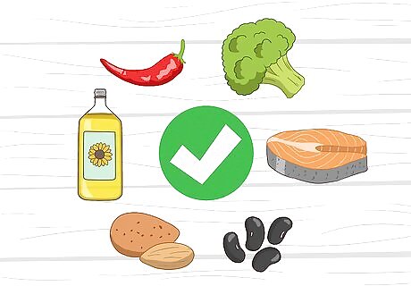 Increase your intake of foods high in omega-3 fatty acids. Omega-3 fatty acids help reduce inflammation in your body, so they can help reduce your risk of flare-ups. They also support your immune system! Choose foods high in omega-3s at least 3-4 times per week. Good sources of omega-3s include fatty fish (such as salmon, cod, or halibut), nuts, vegetable oils, flaxseeds, flaxseed oil, and leafy vegetables. You can also take an omega-3 fish oil supplement. However, talk to your doctor before taking any supplements.
