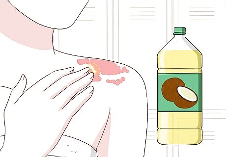 Apply oils to your rashes to reduce dryness, scaling, and itching. Natural oils can help improve your symptoms. Coconut oil is useful for treating your rashes, plus you can add an essential oil, if you like. Slather the coconut oil directly onto your rash 2-3 times per day. Essential oils that can help relieve your psoriasis symptoms include tea tree oil, evening primrose oil, chamomile, and bergamot oil. Only use one at a time. Mix a few drops of the essential oil into a carrier oil, such as your coconut oil. Essentials oil can irritate your skin and make psoriasis worse if you don't dilute them.