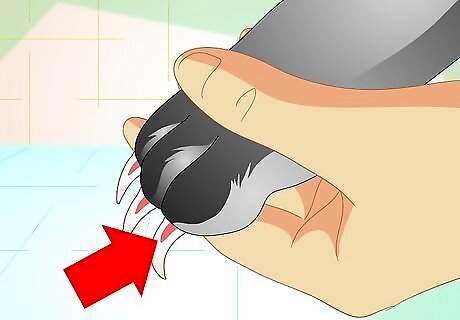 Identify the bleeding nail. Sometimes no matter how careful you are, you might accidentally cut into the quick. If your rabbit is squirming and struggling, it may be difficult to tell which nail is bleeding, but it's important to determine where to apply pressure and any styptic products (if necessary). Try to restrain the rabbit. You should be able to tell which paw is bleeding, so while your friend restrains the rabbit's body you'll need to hold that paw and examine it.