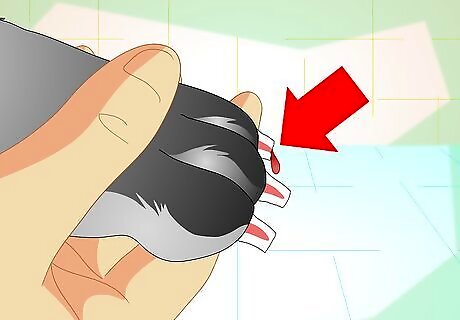 Find the quick. The quick is the term for the vein that runs through your rabbit's nails. The nail grows around and below the quick, so it's important to only trim the excess nail that has grown past the quick without damaging the nerves there. You'll need to find the quick on each nail before cutting. Take extra care not to rush this part, as cutting into the quick can be very painful for your rabbit and will cause him to bleed. Use a flashlight to find where the vein/quick extends to in each nail. This may be particularly useful if your rabbit has darker nails, which can make it difficult to find the quick with the naked eye.