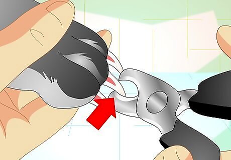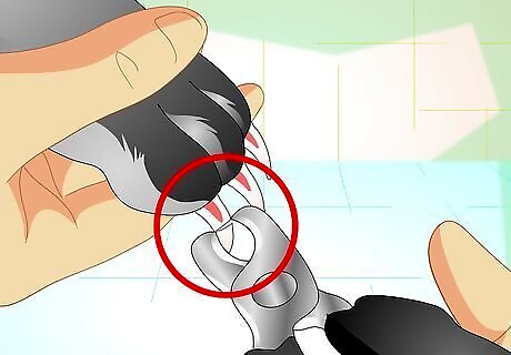 Cut the nail. Make sure you've identified the quick before cutting into the nail. Once you're ready, proceed with caution and make sure the rabbit is restrained. Position the nail clippers in place just below the vein. Make sure you cut approximately two millimeters away from the quick. Clip firmly to ensure that the nail is cut all the way through. Otherwise, if you only cut halfway through, your rabbit may become frightened and start to thrash and squirm.