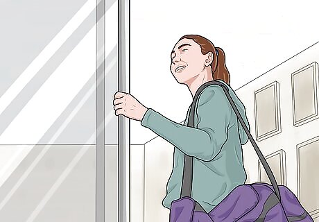 Arrive early. If you're new to a barre workout, or any workout, consider getting to the class or studio a little early. This can help you get yourself set up and prepared for the workout ahead. Many instructors recommend that beginners or first time barre practitioners arrive to the studio early. They usually have some forms or waivers for you to fill out. While you're there, talk to the instructor. Tell her you're new and haven't done this workout before. Don't be embarrassed about this! She will be able to help you and give you additional guidance during class. The instructor may also be able to give you a little tour of the studio. She will show you the barres, mats and places where you'll be doing the exercise. In addition, ask for a run-down of the routine so you can get an idea of what to expect from the class.