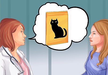 Talk to your vet about the right food and supplements. Every cat is different. Depending on your cat's health condition, your vet will suggest different types of food and supplements. Make sure you follow your vet's recommendations regarding your cat's diet. Ask any questions you have at the vet's office and feel free to call the vet if you have questions when you get home. You should know the type of food to use, the amount to feed your cat each day, and how much to feed at a time. Tube fed cats are not fed meals all at once. Your vet can also give you general advice on how to get your cat to cooperate. Vets have vast experience dealing with stressed animals, so your vet's guidance regarding getting your cat to behave is invaluable. Ask your vet to show you the proper way to tube feed your cat. They can walk you through the process and let you practice before you have to do it at home.