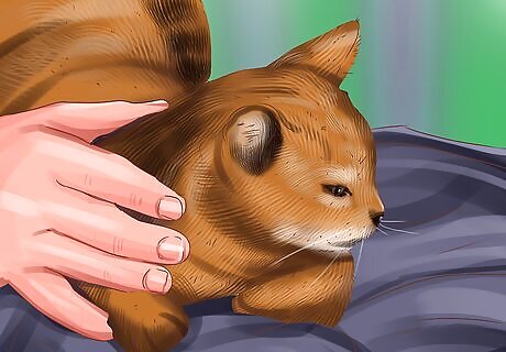 Comfort your cat if they're frightened during feeding times. Cats may become agitated or frightened during tube feeding. If this occurs with your cat, comfort them during the process. Strive to stay calm yourself during feeding, as your cat can pick up on your fear. Feed them in a quiet location and pet and talk to them during the process. Allow your cat space after tube feeding to calm down. You can let your cat go somewhere in the home and hide until they feel better.