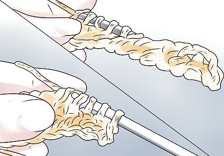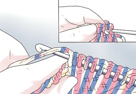 Repeat as needed. Alternate back and forth between the forward pass and reverse pass until you reach the end of your Tunisian double crochet section or the end of your work as a whole. Always end with the conclusion of a reverse pass. Skip down to the section on "Finishing the Work" if you are ready to tie off the work at the completion of this step.