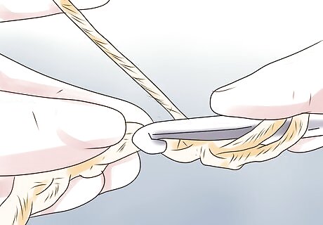 Draw the new color through both loops. Attach the new color to the tip of your hook, then draw this new color through both loops already on your hook. To attach the new yarn, tie it to the tip of your crochet hook with a standard slipknot. When you finish this step, you should have one loop of your new color on your hook and none of the old color on your hook.