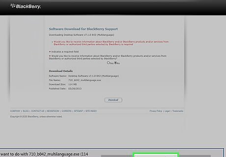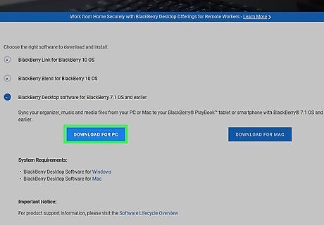 Select the option to download Blackberry Desktop Manager to your computer running Windows or Mac OS X. Blackberry Desktop Software allows you to update your Blackberry software, as well as sync and back up contacts, email, calendars, and other personal data with your computer.