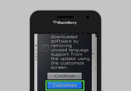 Tap on “Customize,” then select the files and applications you want to be updated on Blackberry device. Your Blackberry will begin downloading the latest update. Alternately, tap on “Continue” to install the default software package from Blackberry.