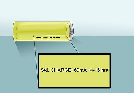 Check for noted charge rates. Some batteries may have a specific amperage for best results. This may include charge times for "fast" or "standard" charge speeds. Always follow manufacturer recommendations for best results and safest use. As an example, you may see that your battery might have "Std. CHARGE: 60mA 14 - 16 hrs" written on it. This battery would charge best at 60 milliamps for a minimum of 14 hours.