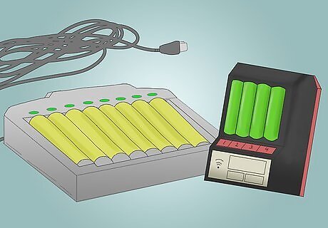 Purchase an appropriate charger. The rechargeable batteries you bought earlier will also help you to decide which charger you invest in. Some chargers are intended for only NiMh or NiCd batteries, though some universal chargers are available. Most AA and AAA battery chargers can be used for both NiMh and NiCd batteries, though you should always consult your manual to be certain.