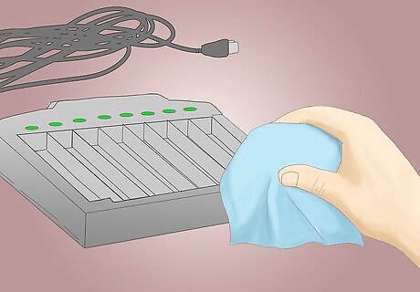 Clean the connections. Over time, dirt, grime, or corrosion may have degraded the connections of your charger's charging plates or clamps. If you notice a white film, rust, or other signs of dirtiness, you may want to clean the connections with a manual recommended cleaning product. Consumer battery charger connections can sometimes be cleaned with alcohol, but you should consult your manual to prevent accidental damage to your charger. Car battery chargers can be cleaned with a solution of baking soda and water.