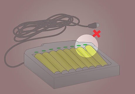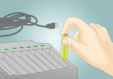Remove all charged cells. Once your timer is up or the display on your charger indicates that all batteries are fully charged, as is usually the case with smart chargers, unplug your charger and remove the batteries. If you find that your batteries are difficult to remove, use a gentle tapping motion until one is jarred free.