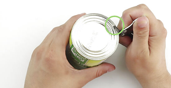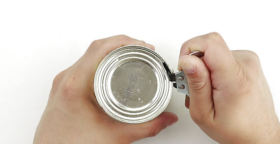 Move your right hand slightly back and turn the can opener like a key again.