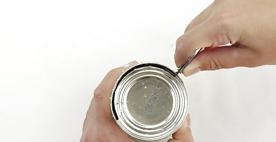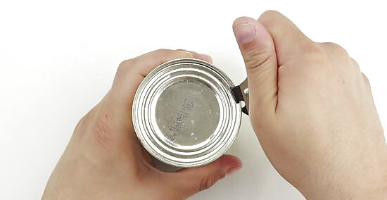Turn the can counterclockwise with your left hand so that you can allow your right hand better access to the un-cut edge of the can.
