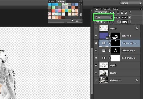 Change the Blend mode to Color. Do this with all of the adjustment layers.