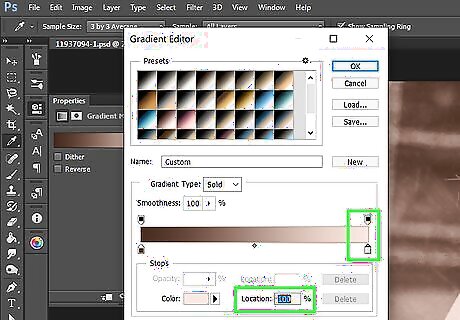 Start moving the sliders. Use the Location sliders to adjust where the gradients stop and start. This will help your image have more lifelike colors. You can still change and add colors to the gradient. Maybe it's too orange, so you change that color so it no longer is orangey.