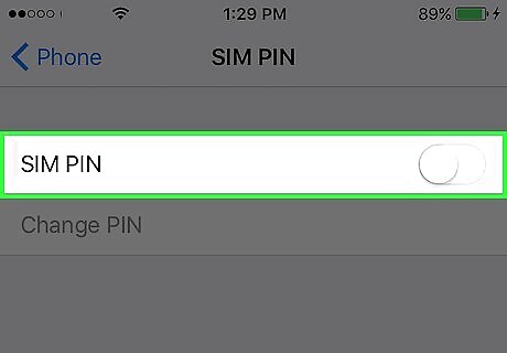 Slide the “SIM PIN” switch to the On position. The switch will turn green.