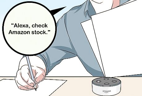 Check stock prices. Say the name or spell the symbol of any stock on the New York Stock Exchange or NASDAQ. "Alexa, check Amazon stock." Alexa, stock price for A-M-Z-N."