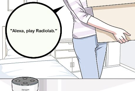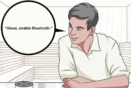 Play music over Bluetooth. Just pair any Bluetooth-enabled device, like your phone, to play anything on Alexa. After the device has been paired initially just say, "Alexa, enable Bluetooth." or "Alexa, connect." to pair that device again. This is often a better option for playing podcasts than Alexa's native ability since you have more control over playback and won't lose your place.