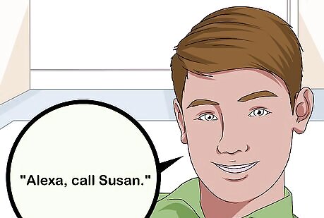 Make phone calls or call through the Alexa app. Alexa can make outgoing calls simply by asking her to dial any U.S., Mexican or Canadian number. If you have contacts added on the Alexa app you can also make a voice call, send text messages (over the Alexa app), or use the drop in feature if you have set it up. "Alexa, dial 555-555-5555." "Alexa, send a message to Susan." (Alexa will then prompt you for the text message you want to send) "Alexa, call Susan." You can also send and receive voice calls and Alexa messages from the Alexa app. Tap on the speech bubble icon at the bottom of the screen. If you haven't yet set up messaging yet, it will walk you through the set up.