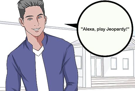 Play a game. There are many game skills available for Alexa in the skill store. Popular ones include: Jeopardy! There are also Sports and Teen versions of the game. Remember to answer in the form of a question! "Alexa, play Jeopardy!" Song Quiz. This popular game will match you against an opponent and ask you to identify clips of music. "Alexa, start Song Quiz." Twenty Questions. Play this classic game and try to stump Alexa. "Alexa, play Twenty Questions." The Magic Door. This is basically a choose-your-own-adventure novel being read out loud to you. "Alexa, open The Magic Door." Go to the skill store to browse through many other games skills.