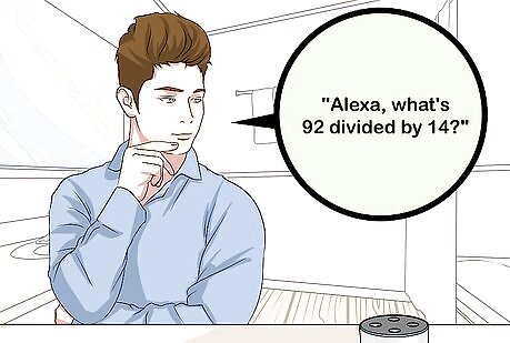 Do mathematical calculations. Ask Alexa to add, subtract, multiply, divide, get the square or cube root, power or factorial. You can only use one operation at a time though. "Alexa, what's 92 divided by 14?" "Alexa, what's the square root of 5?" "Alexa, what's 100 factorial?" (Hint: It's a really big number.) Alexa may know other math questions as well, so give it a try if you're not sure. For instance, she can answer some questions about prime factors, give you the value of 'pi' or 'e' and calculate sine, cosine or tangent.
