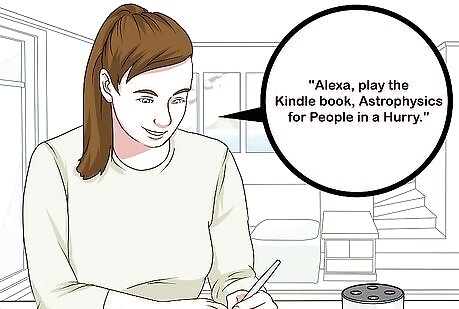Play most Kindle Books. Using text-to-speech Alexa can read many Kindle books from where you last left off and keep your place. "Alexa, play the Kindle book, Astrophysics for People in a Hurry." "Alexa, pause/resume." "Alexa, set a sleep timer for 15 minutes."