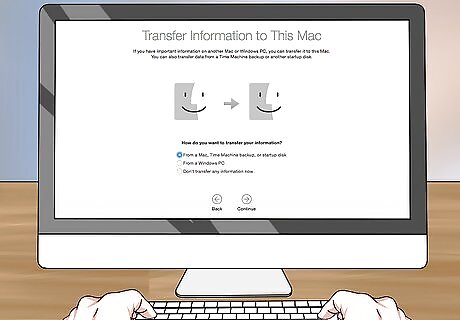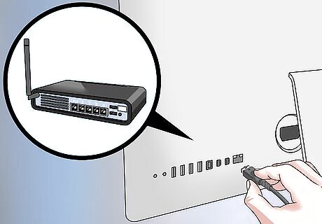 Connect to a Wi-Fi network. If you didn't already select a wireless network during the iMac setup process (or you want to select a different one), you can do so from the Wi-Fi menu in the upper-right side of your iMac's screen. You can also use an Ethernet cable to connect your iMac directly to your router. You'll find the square Ethernet port on the back of your iMac's monitor.