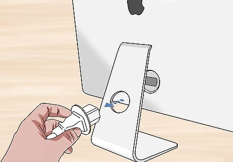 Plug your iMac into an electrical outlet. Attach one end of the included power cable to the three-pronged plug on the back of the iMac monitor, then plug the other end of the cable into an electrical outlet.
