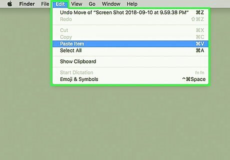 Find the menu buttons. You should see several menu items in the left-hand side of the menu bar; these buttons will change depending on the currently open program, but a few will always be available: Apple Menu Mac Apple — Contains menu options regarding your iMac. The Apple menu won't change to reflect your currently open program. File — Contains options for things like creating folders and viewing file information. The File menu shares options with the right-click menu. Edit — Contains options for things like copying and pasting text, as well as a shortcut to the Emoji & Symbols menu. View — Contains various options for different windows, the menu bar, and so on.