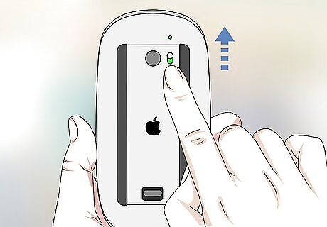Turn on the Magic Mouse and the keyboard. The Magic Mouse's switch is on the bottom of the mouse, while the keyboard's switch is on its back. If you see green displaying below the switch, the item is on.