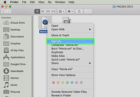View a file's information. If you want to see more information about a file, click the file once, then click File and click Get Info in the resulting drop-down menu. You can also do this on the desktop by clicking an item (e.g., a folder) and then clicking File and selecting Get Info, or by Control-clicking the item and clicking Get Info. The keyboard shortcut ⌘ Command+I can be used to open a selected file's information window.
