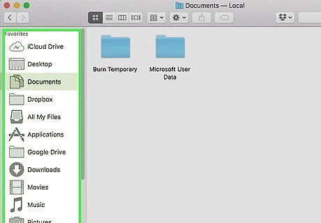 Review the Finder folders. On the left side of the Finder window, you'll see a column of different items; this is a list of the main folders on your computer. You may also have an option entitled All My Files at the top of the column. This option shows a comprehensive list of your computer's files without including the files' folders.