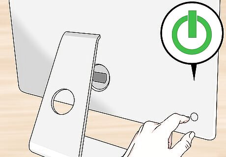Turn on your iMac. Press the Power Windows Power button in the bottom-right corner of the back of the iMac's monitor.