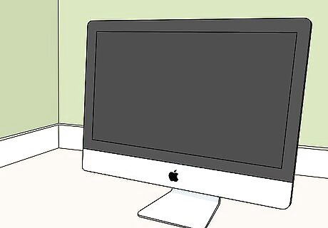 Place your iMac monitor on your desk. Your iMac's monitor actually contains all of the hardware needed to run your iMac (e.g., the processor, hard drive, and so on), so you don't need to set up a tower like you might need to with a Windows PC.
