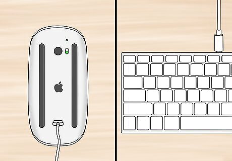 Charge your keyboard and your mouse. Both the Magic Mouse and the keyboard must be charged occasionally via the USB-C to Thunderbolt 3 cable. You can use the keyboard while it is charging, but the mouse cannot be used while charging. It's important to keep both of these items charging when not in use.